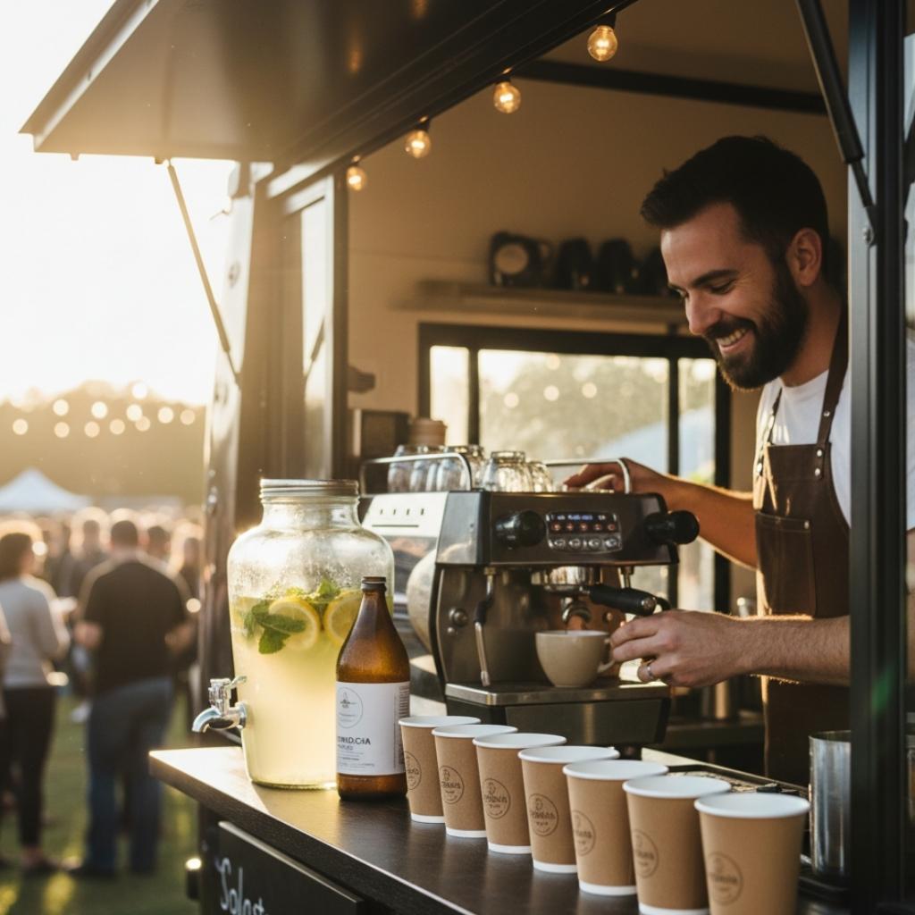 - Café y bebidas: un coffee truck con espresso bien tirado, tés, limonadas, kombuchas o incluso coctelería zero alcohol. Genial para desayunos corporativos o para reactivar la tarde.